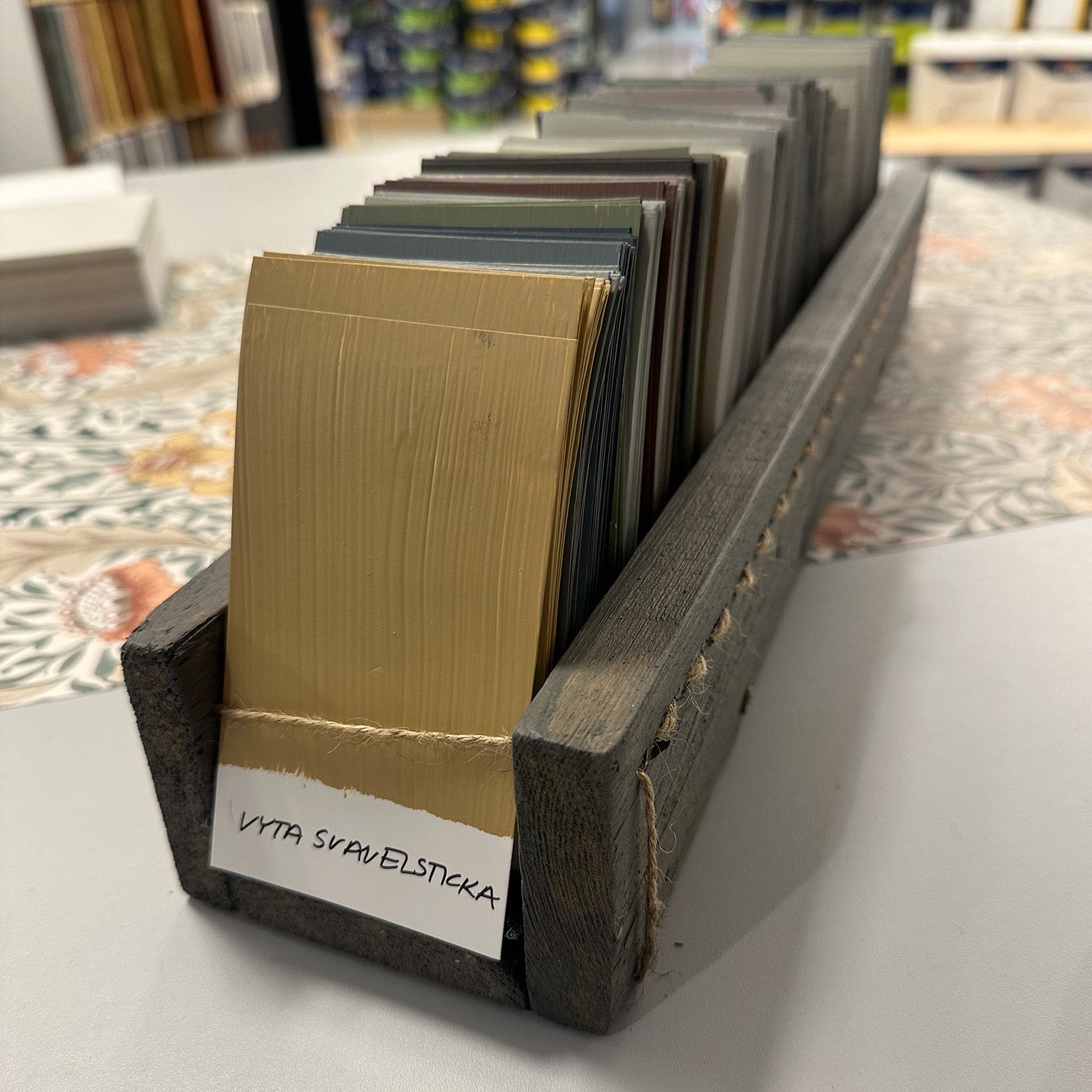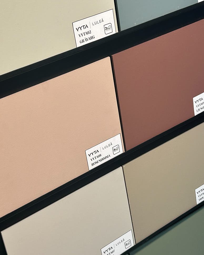 Urvalet är gjort med våra kunders hem, ljusförhållanden och önskemål i åtanke. Vi har valt kulörer som fungerar i vår närmiljö och som vi vet skapar trygga, vackra helheter.