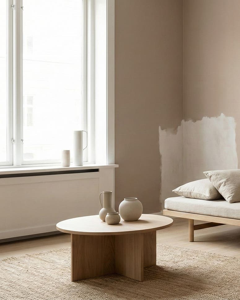 En mjuk rosé kulör som ger rummet ett varmt och harmoniskt uttryck. Rosendimma skapar en lugn och ombonad känsla och passar fint tillsammans med ljusa material, trä och textilier.